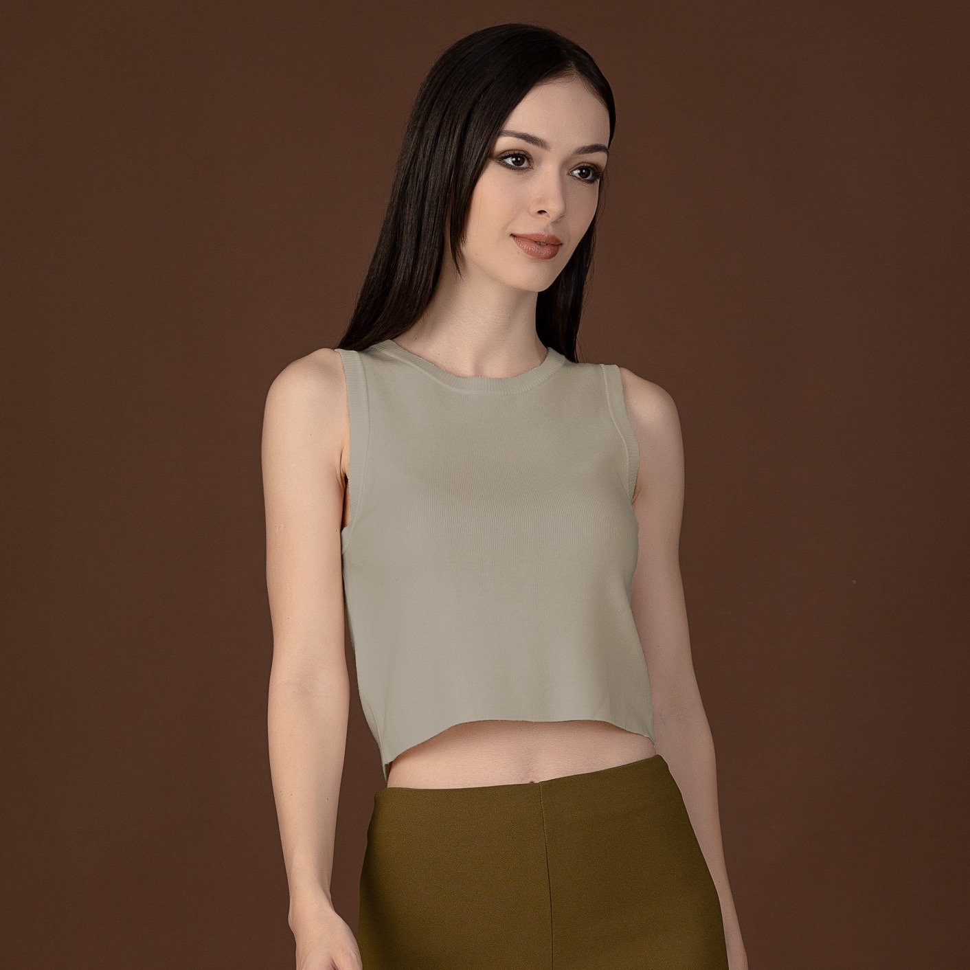 Introducing our must-have sleeveless top, expertly knitted for supreme comfort and style. Crafted from a stretchable knit material, this top offers both flexibility and a flattering fit. With its simple yet chic cut, it’s the perfect versatile piece for any occasion, easily layered or worn solo for effortless elegance.